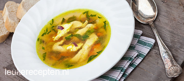 Zet een soeppan op het vuur en verhit de boter. Bak de kipreepjes 5 minuten aan. Bestrooi met kerrie en voeg het uitje toe. Giet het water erbij en breng aan de kook. Roer de bouillonblokjes er door heen totdat ze helemaal opgelost zijn. Voeg als laatste de soepgroenten toe en laat nog 5 minuten zachtjes doorkoken.